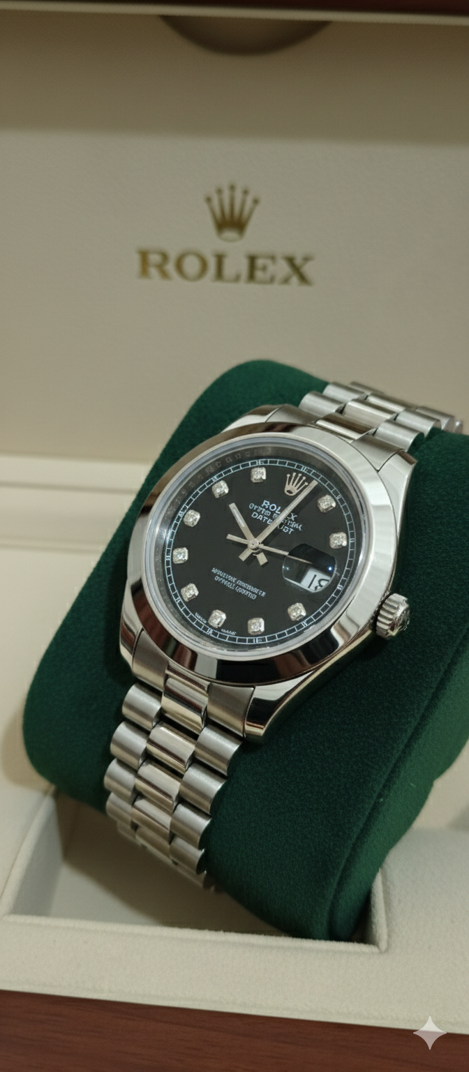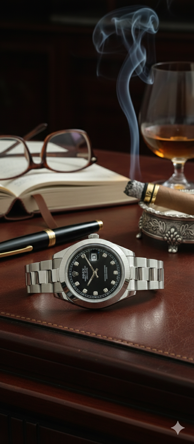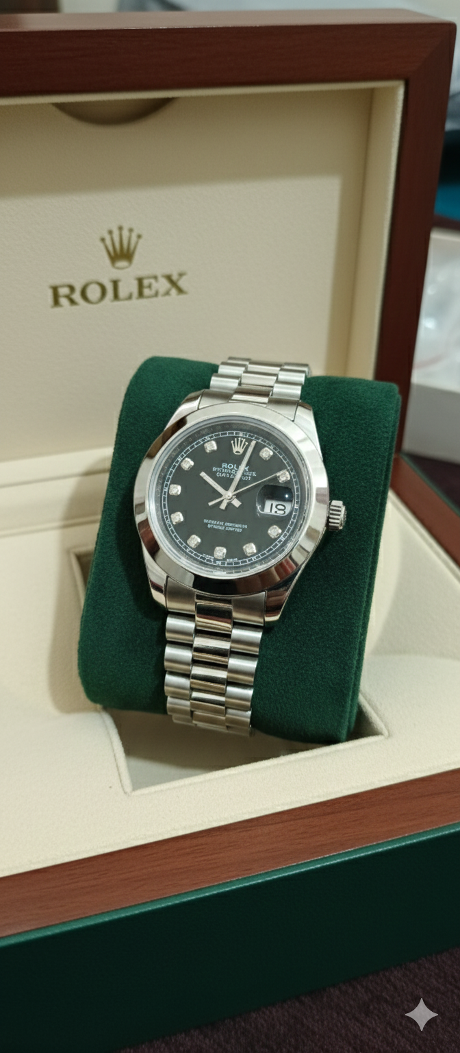 Crafted from high-quality stainless steel, the case and Oyster bracelet deliver exceptional durability paired with a polished finish that exudes elegance. Powered by an automatic self-winding movement, this timepiece offers reliable precision and effortless performance, making it suitable for both everyday wear and formal occasions. Whether worn as a statement of success or an heirloom-quality accessory, this watch represents the perfect fusion of innovation, craftsmanship, and classic design.