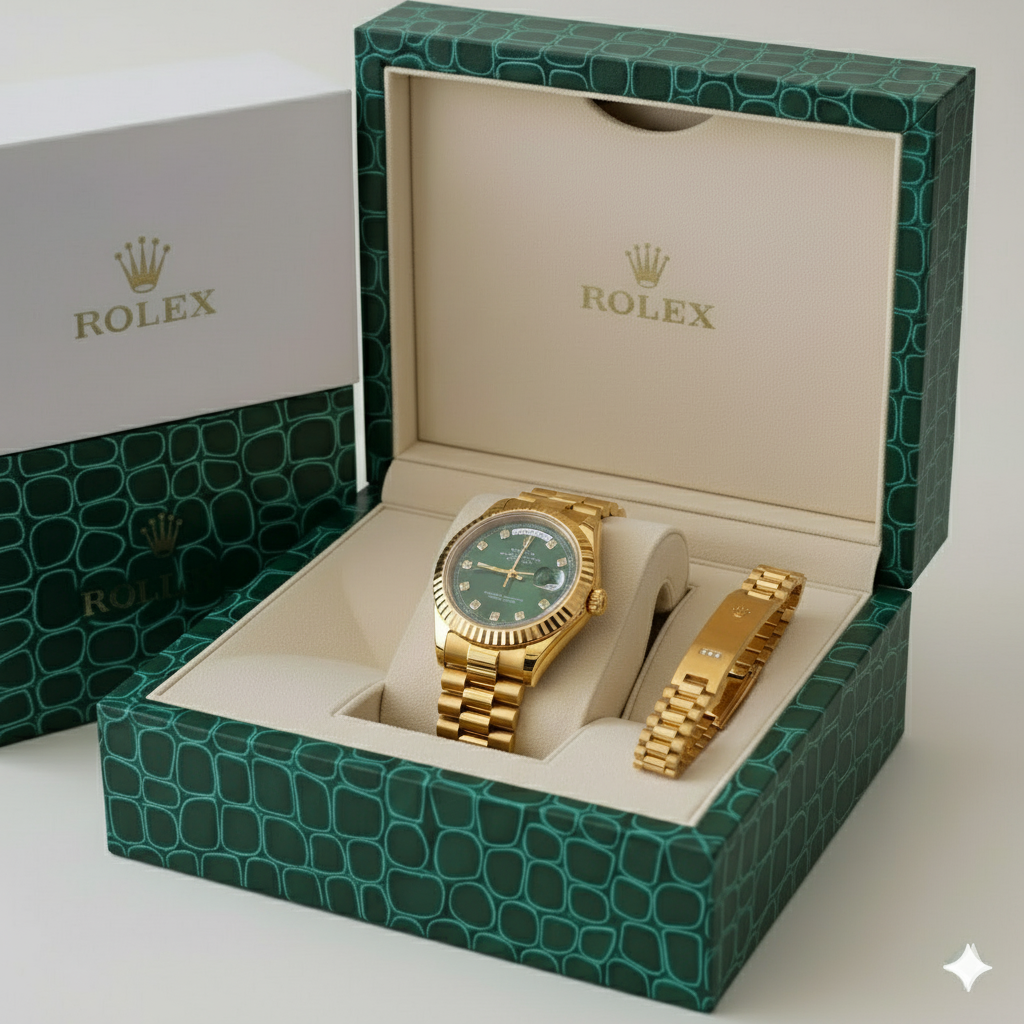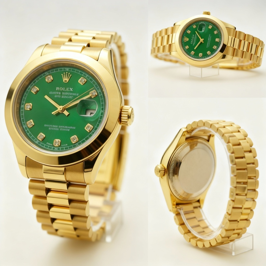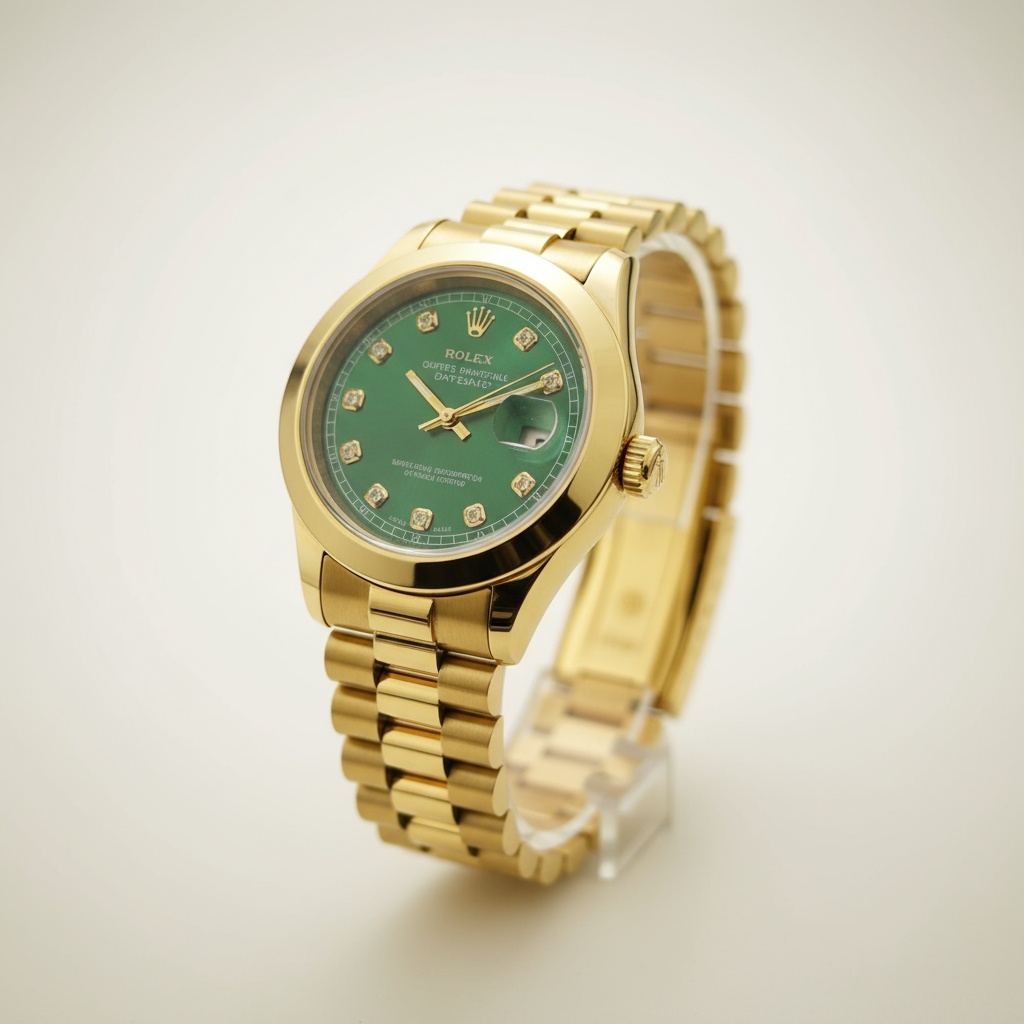 The ultimate expression of prestige: an 18 ct yellow gold classic with a captivating green ombré diamond-set dial and President bracelet.