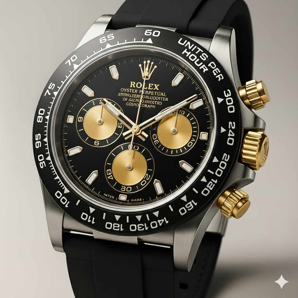 The ROLEX OYSTER PERPETUAL BlueSport Chronograph S9 is a bold fusion of modern sport performance and luxury design. With its radiant blue dial, precision chronograph complications, and blue ceramic-style tachymeter bezel, this timepiece commands attention. Gold-toned details, a sapphire-style crystal, and an ergonomic rubber strap complete the experience—making it the perfect companion for both refined occasions and high-energy pursuits.